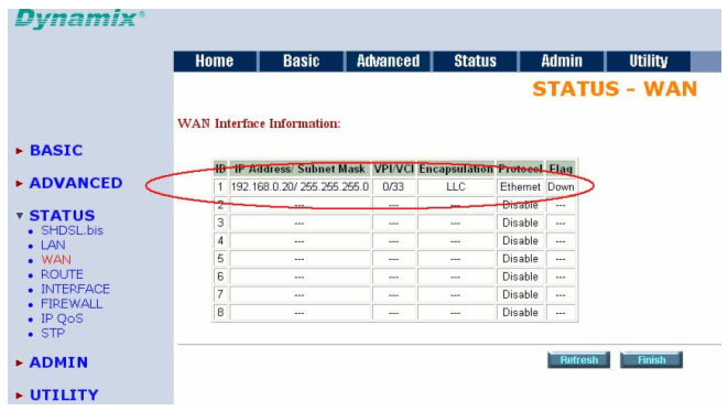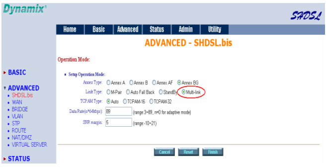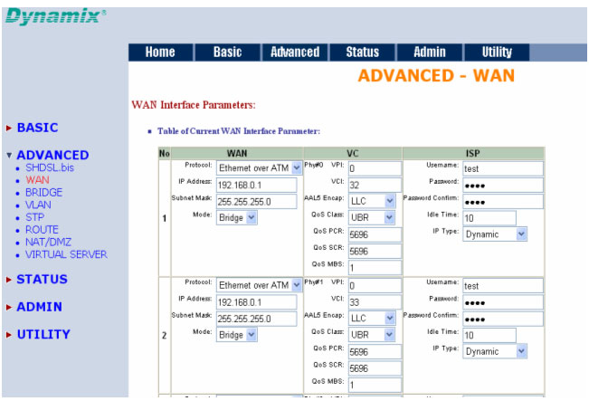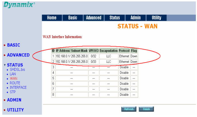 Особливості настройки: 1.2 Установіть модем у режим «Multi-link» в меню ADVANCED => SHDSL.bis. 1.3 Настройте і активуйте два WAN інтерфейса - WAN1 з VPI/VCI 0/32 і WAN2 з VPI/VCI 0/33 (дивитіться малюнок нижче). 1.4 Перевірте правильність настроювань WAN 1.5 Перезавантажте модем. 2. Настройка 2-х