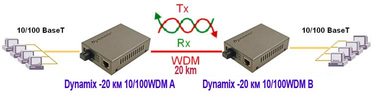 парами, наприклад, Dynamix -20km 10/100WDM A