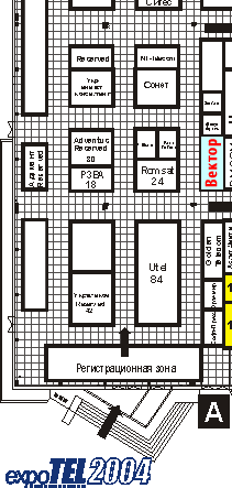 План экспоцентра "КиевЭкспоПлаза" и место стенда "Вектор" в разделе "ExpoTEL 2004"