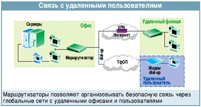 На первый взгляд — это задачи абсолютно разные, однако, как оказалось, подходы к их решению нередко совпадают. Ведь и в том, и в другом случае мы строим доступ в сеть общего пользования, с той лишь разницей, что в Сети мы оперируем ее ресурсами, а между офисами пересылаем корпоративную (внутреннюю) информацию. Правда, такое разделение сегодня также зачастую условно. Например, через защищенные каналы VPN (см. ЧИП 8/2003, с. 72), проложенные в Интернете, мы с успехом можем транслировать опять же корпоративную информацию. Однако что в первую очередь требуется при создании таких, как принято говорить, распределенных сетей?