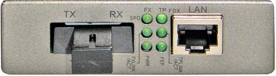 1550nm. Медіаконвертори Dynamix оснащені одним RJ-45 інтерфейсним роз'ємом і одним SC оптичним з'єднувачем, які використовуються для приєднання крученої пари й оптичного кабелю відповідно. Стан медіаконвертера контролюється по світлодіодним індикаторах. |
