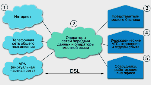 DSL). Такие удаленные учрежденческие телефонные станции обеспечивают своим абонентам такие же возможности (например, голосовую почту и
